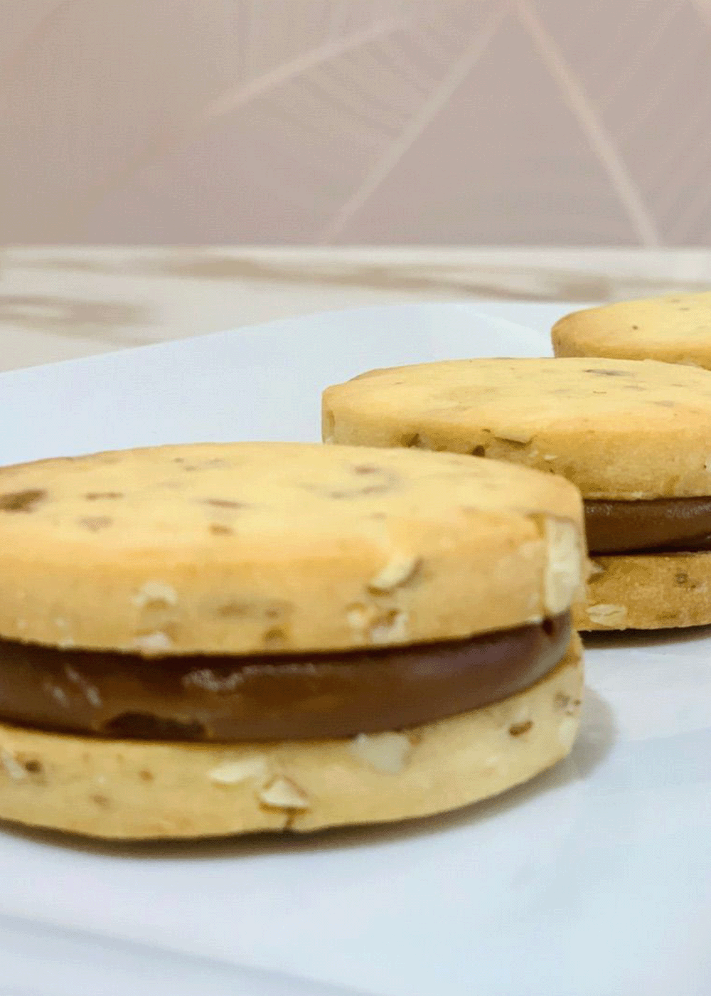 Tapas de sablé de almendras, relleno con dulce de leche.