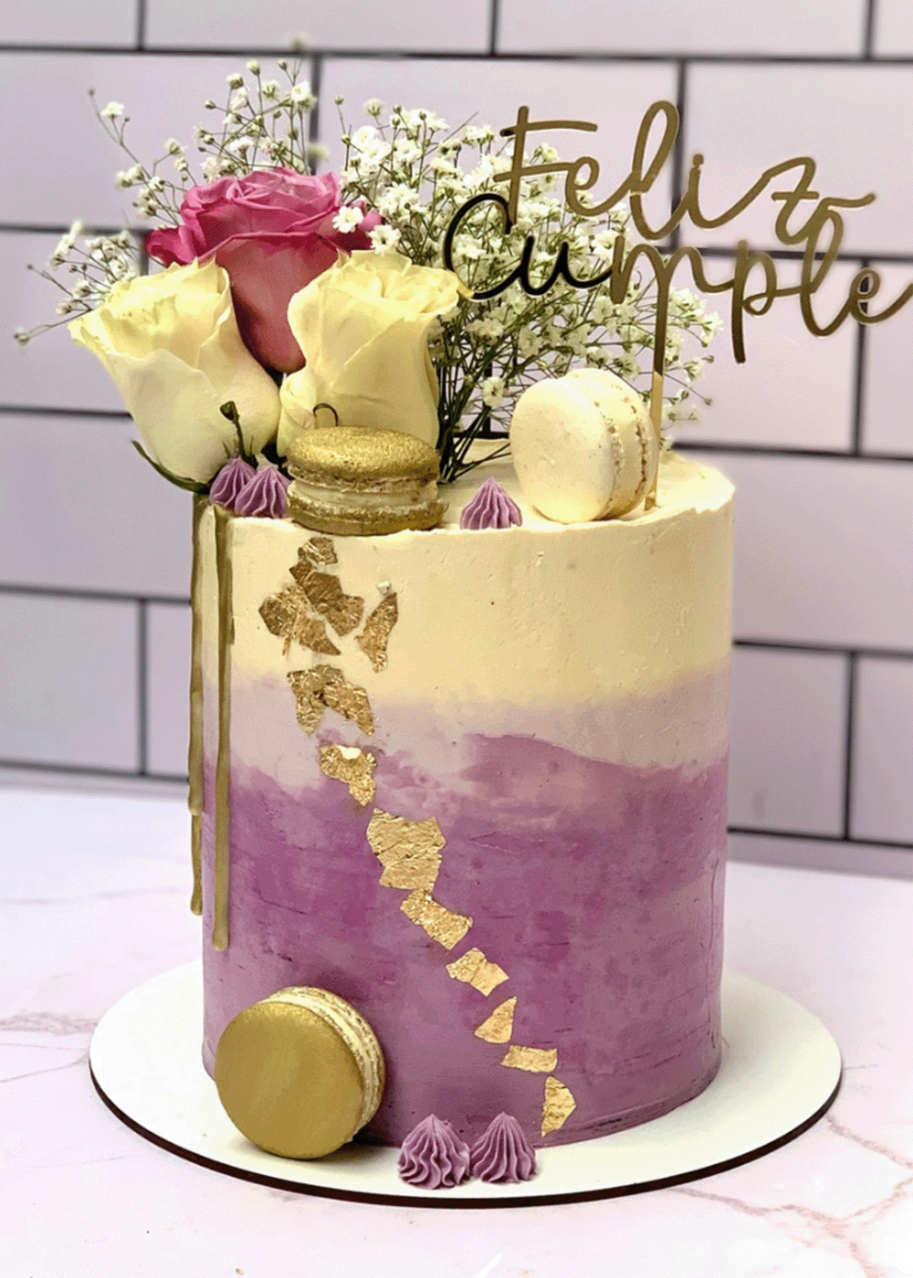 Drip cakes, letter y number cakes, tortas forradas, y cubiertas con butter cream o gabache de chocolate.