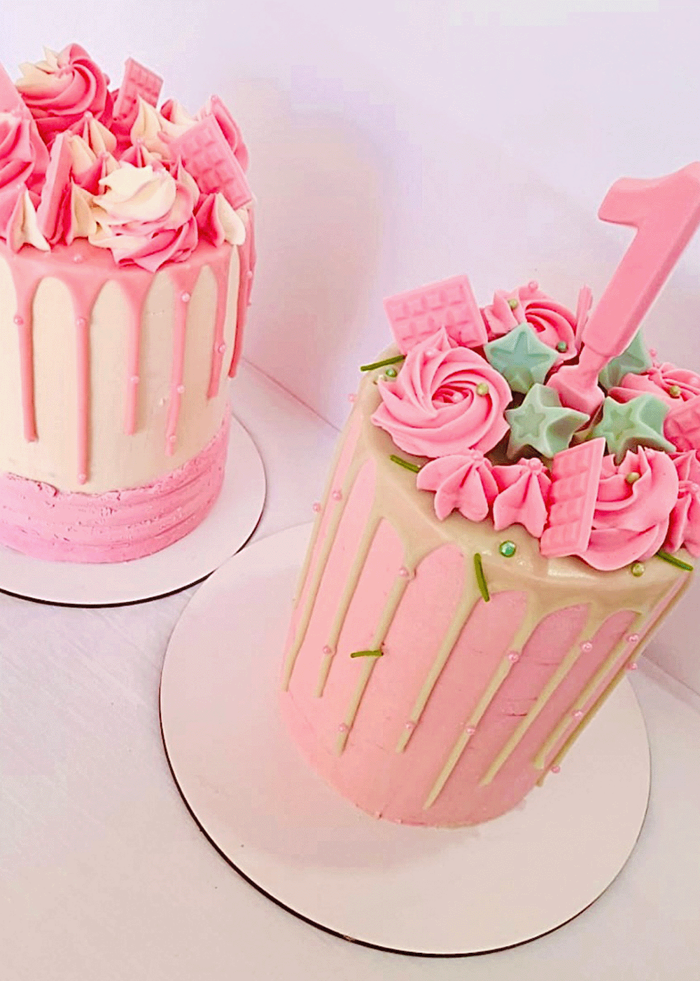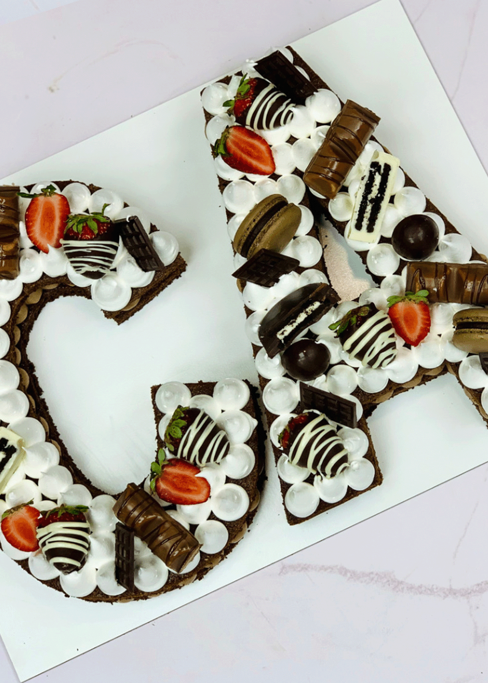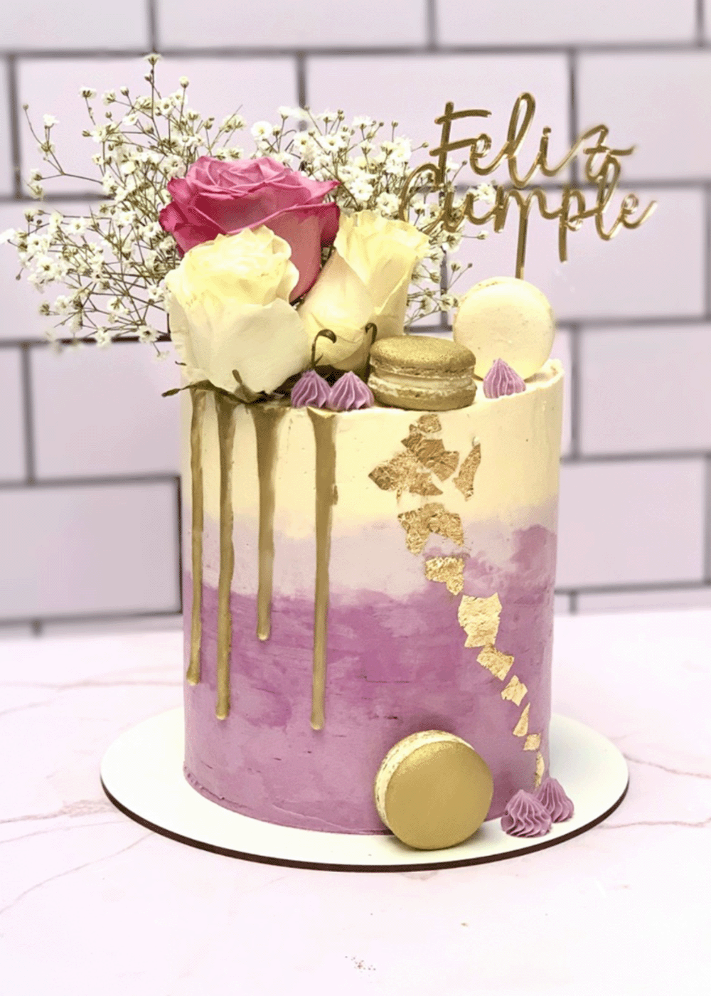 Drip cakes, letter y number cakes, tortas forradas, y cubiertas con butter cream o gabache de chocolate.